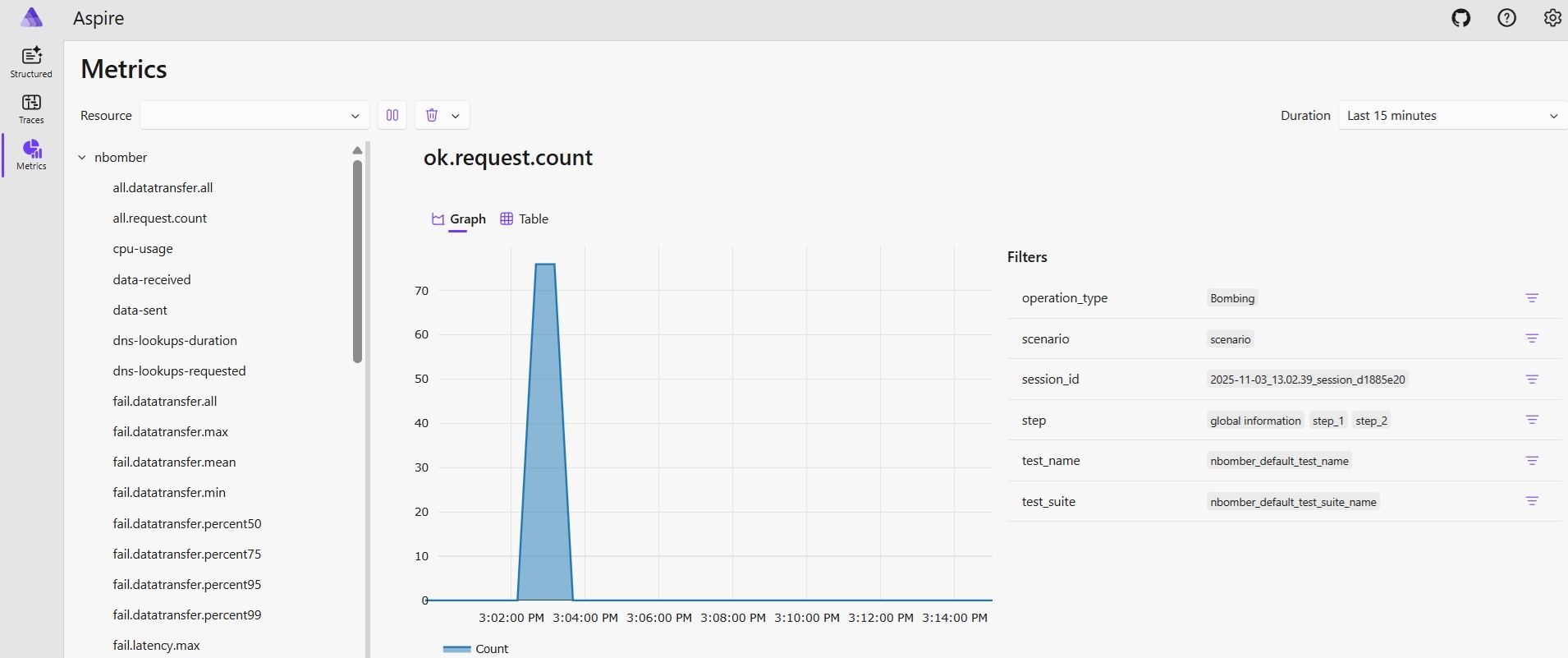 Now you are ready to run the NBomber test and view the real-time metrics in the Aspire dashboard.